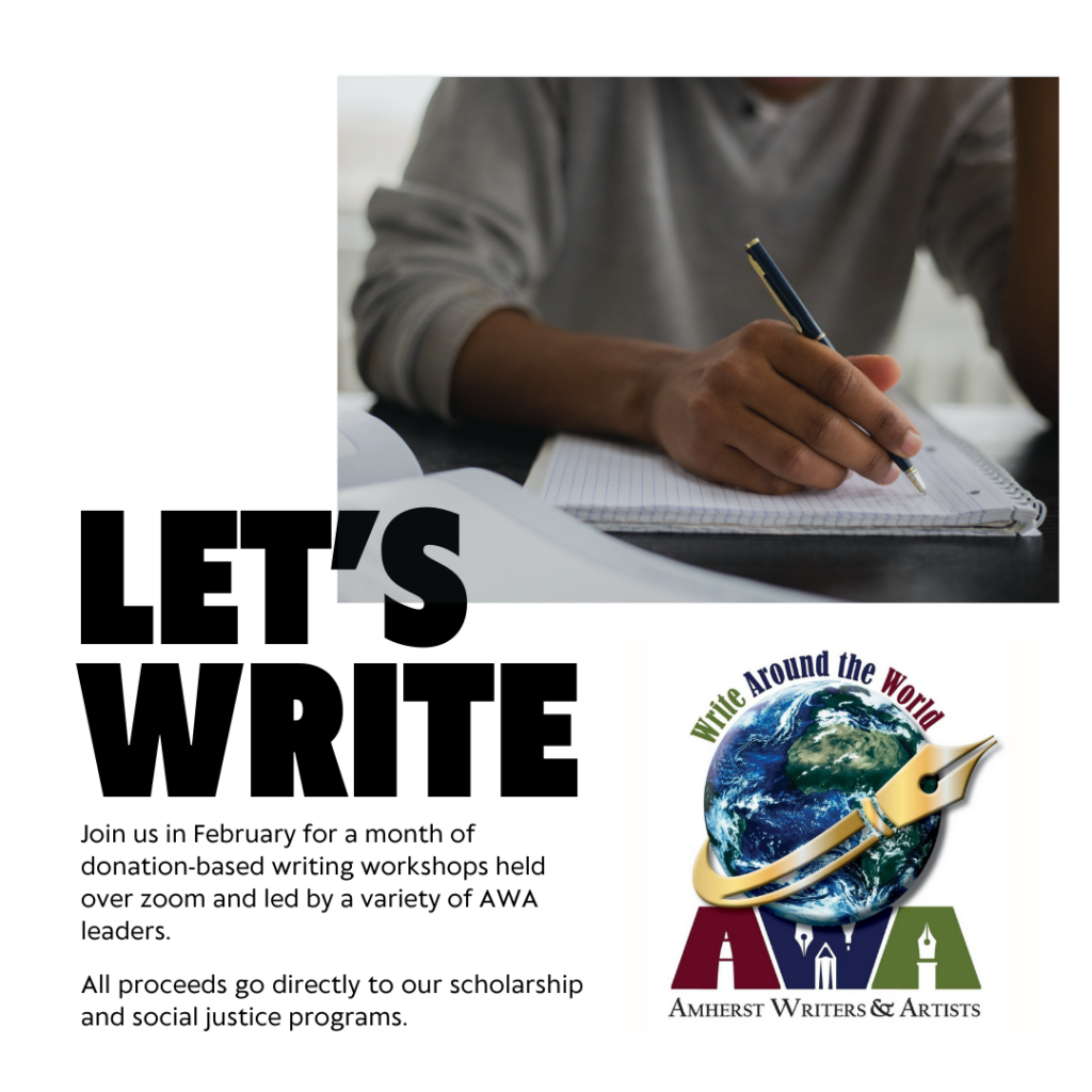 Write Around the World workshops allows beginner, emerging and experienced writers to experience a workshop space that holds safe and creative space using the Amherst Writers & Artists Method. This is also a once-a-year fundraiser to support the social justice programs offered by AWA.